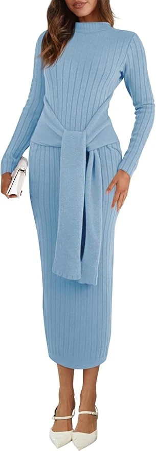 Womens Long Sleeve Midi Sweater Dress
